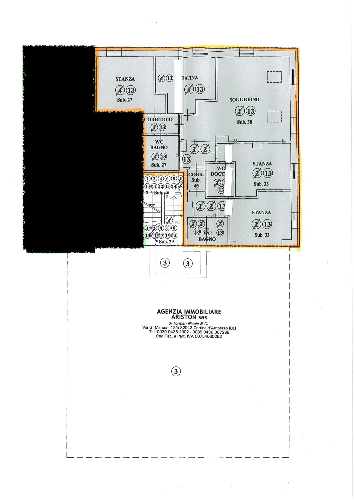 Proponiamo in vendita appartamento al piano secondo e composto da ingresso, ampio soggiorno con stufa tipica ampezzana, cucina separata abitabile, 2 camere matrimoniali, 1 doppia, 3 bagni. Inoltre l’appartamento dispone di un posto auto interno ed una cantina. Esposizione sud-est.